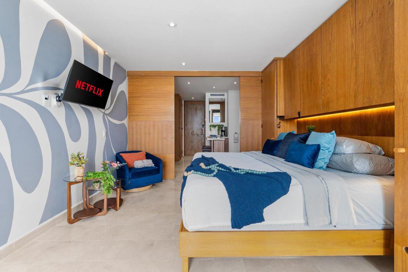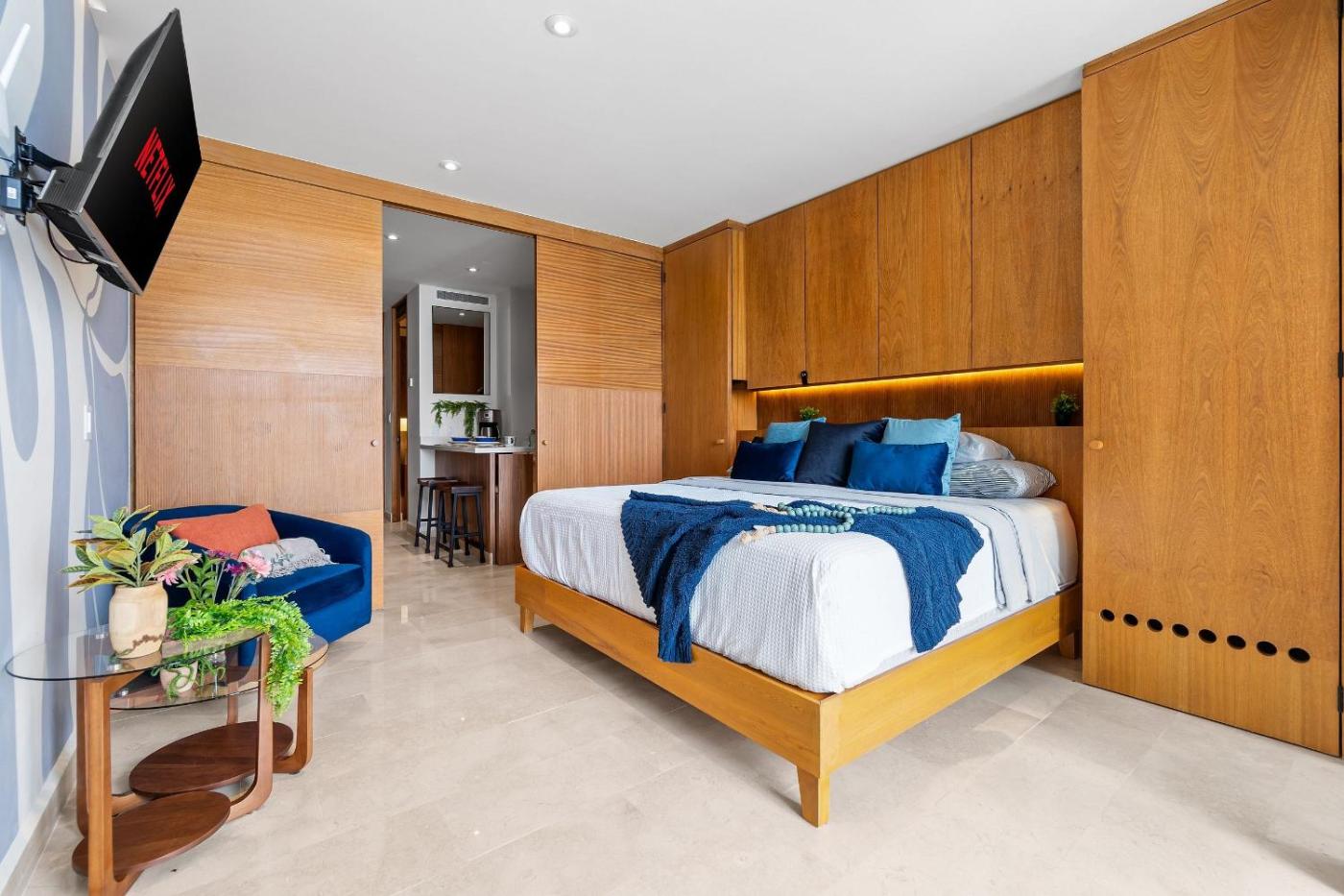 One-Bedroom Apartment with Bay View. The air-conditioned apartment has 1 bedroom and 2 bathrooms with a shower and a hairdryer. The well-equipped kitchen features a refrigerator, kitchenware, a microwave and a toaster. Boasting a balcony with sea views, this apartment also features a coffee machine and a flat-screen TV. The unit has 1 bed.