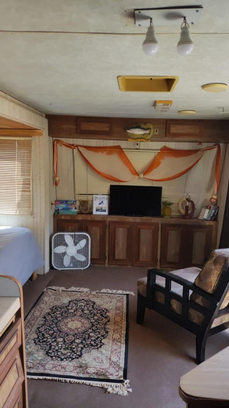Caravan. Guests can make meals in the kitchen that features a stovetop, a refrigerator, kitchenware and an oven. This air-conditioned mobile home is comprised of a flat-screen TV with streaming services, a private bathroom as well as a patio. The unit has 1 bed.