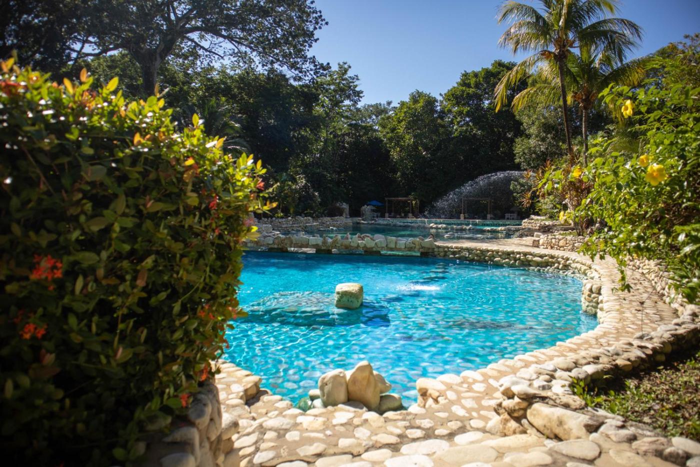 Located in the Lacandon jungle setting in Palenque, this resort is a 5 minute drive to the Archeological Zone of Palenque. A 60 km drive from Cascadas Agua Azul Natural Park. It features 7 outdoor cenote style pools, Villa Suites to choose from pool or river view, restaurant, bar, cafeteria, game room, in site souvenir store, convention center, Maya spa and the most important its contact by nature, local fauna and flora.